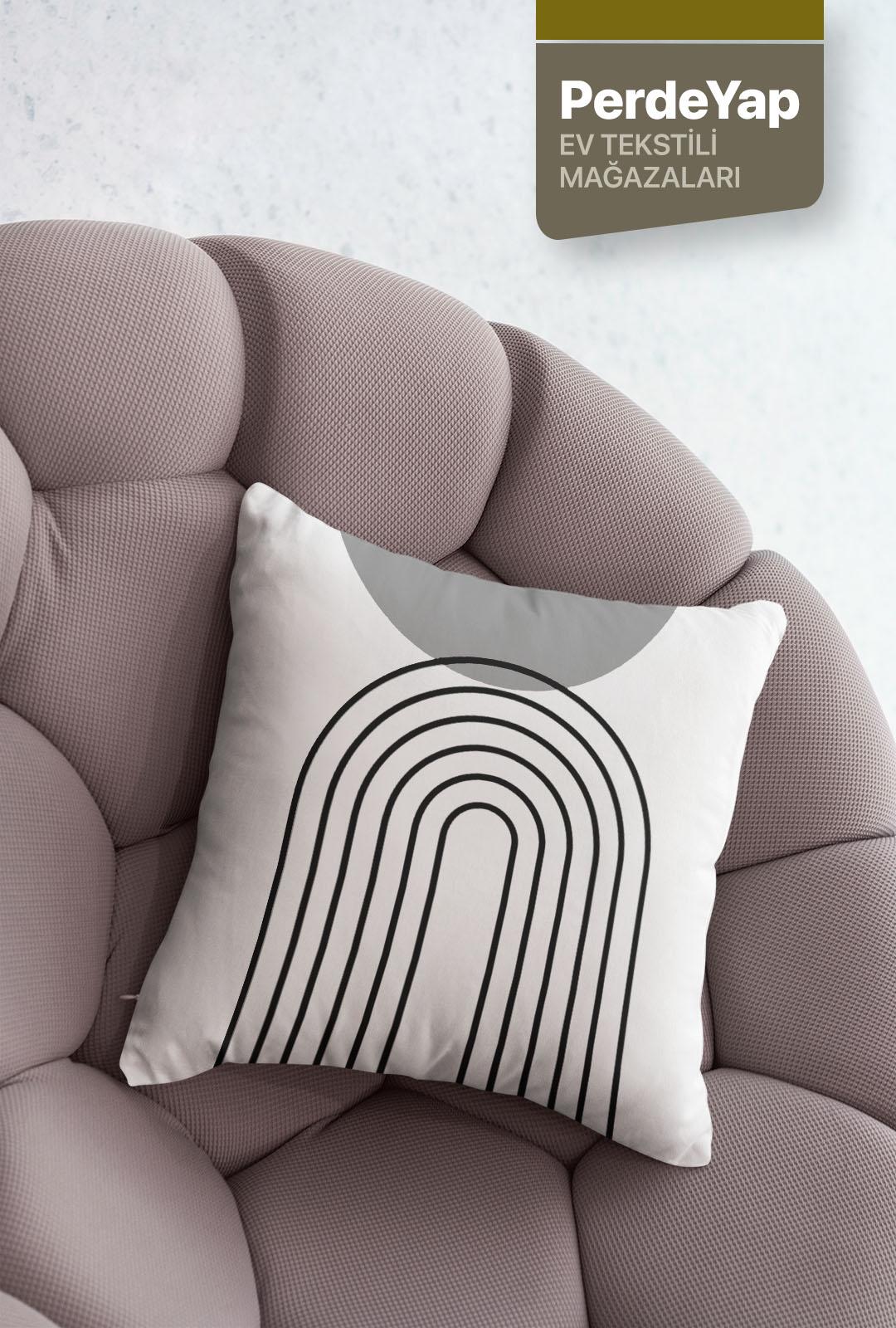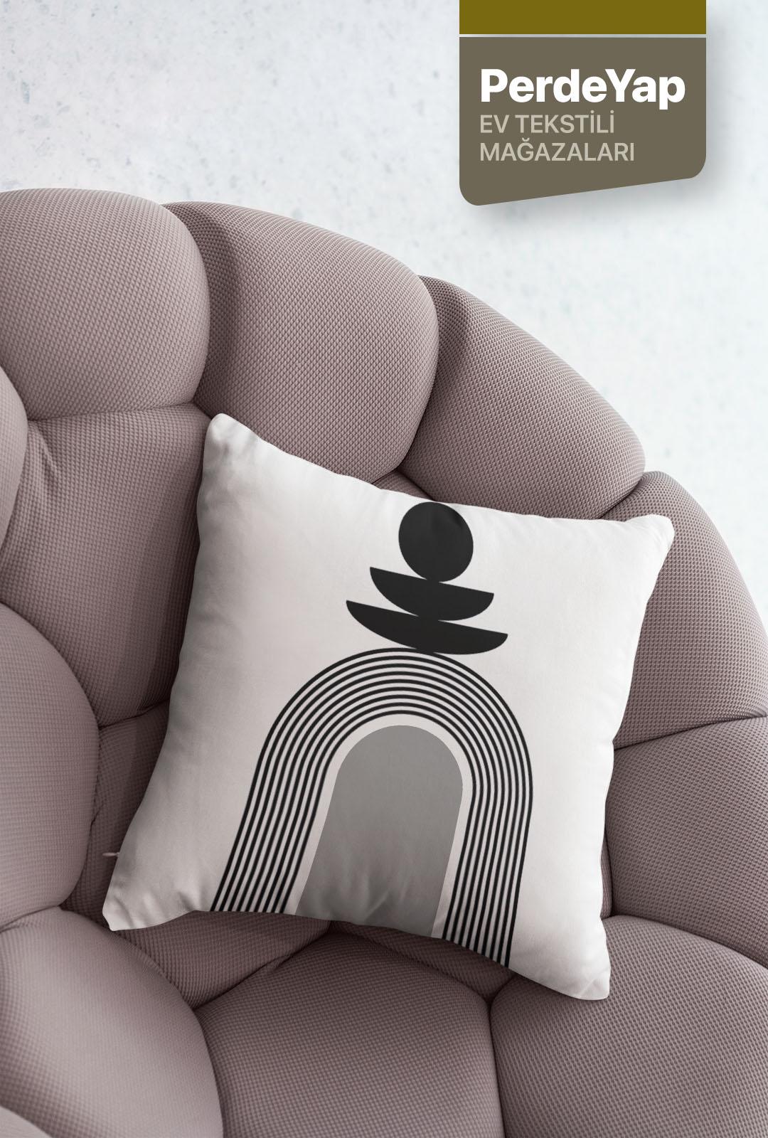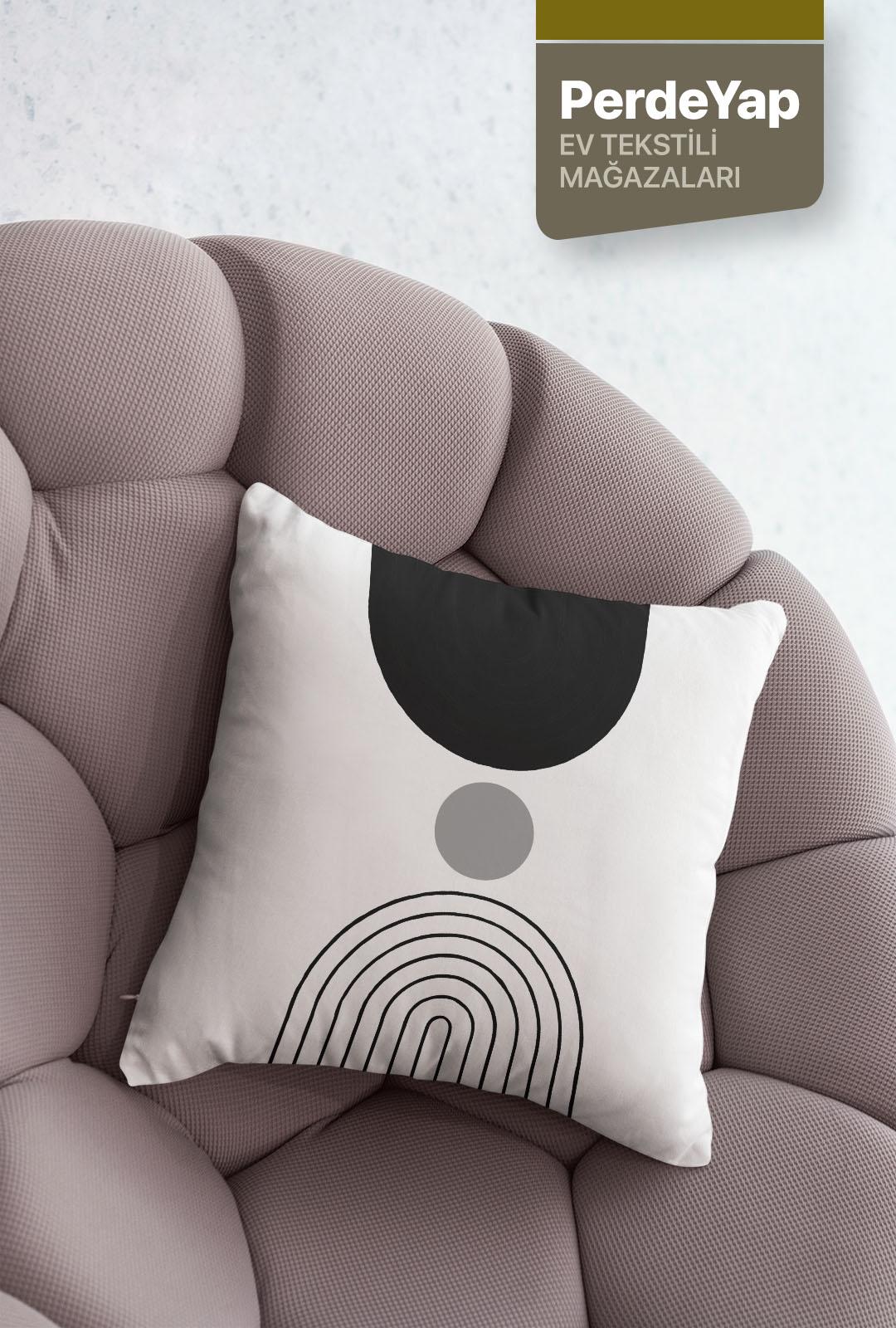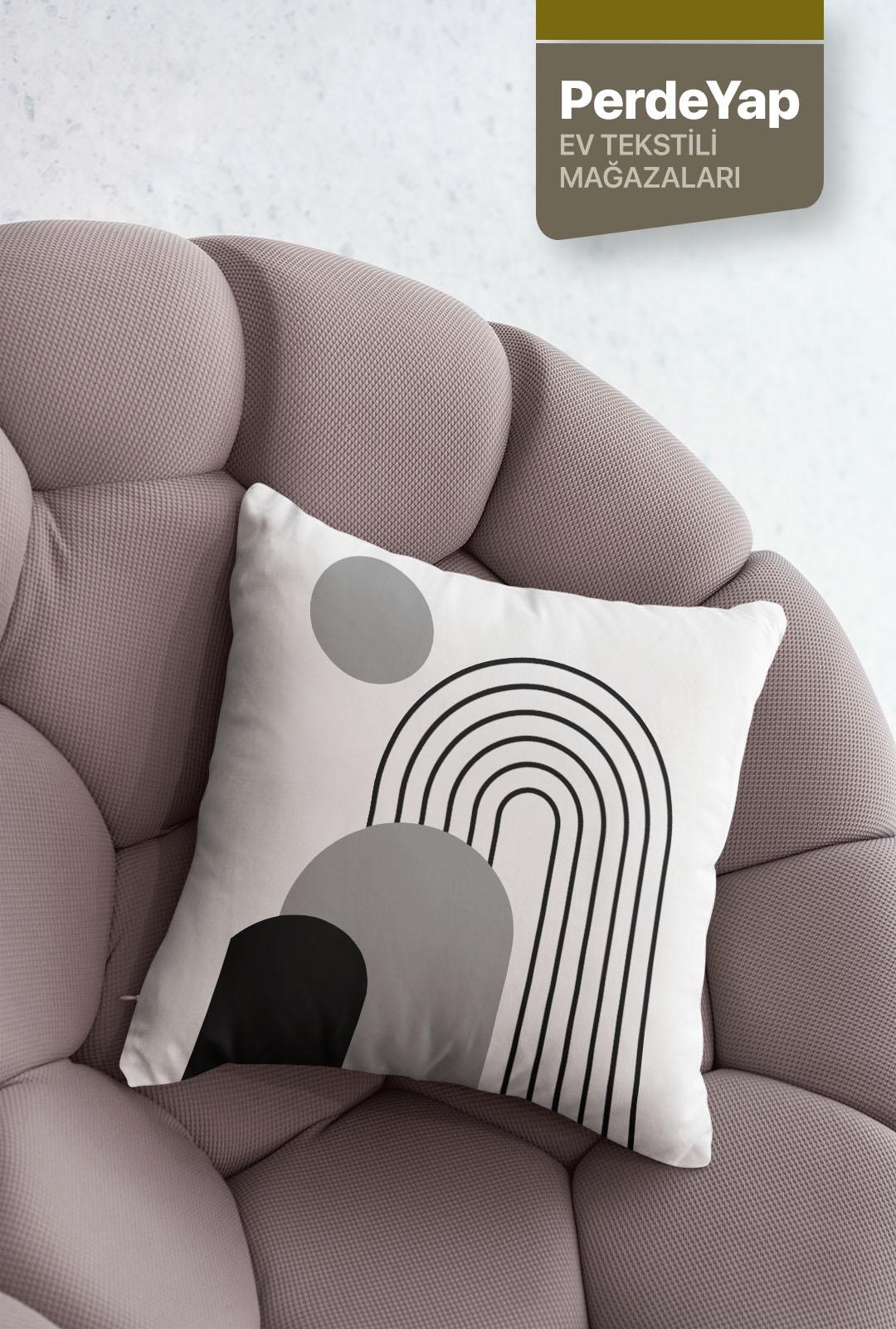 Beyaz Zemin Üzerine Geometrik Desenli 4lü Dijital Baskılı Kırlent Kılıfı 43 X 43 Cm Siyah-Gri 055