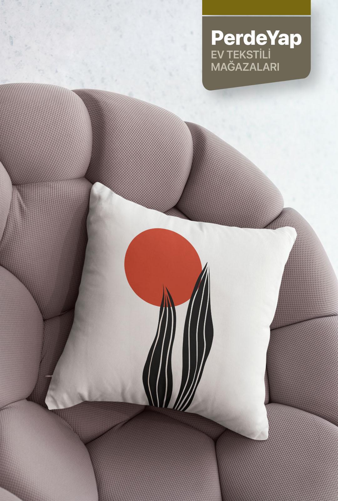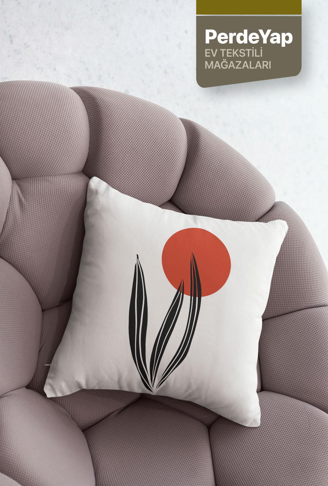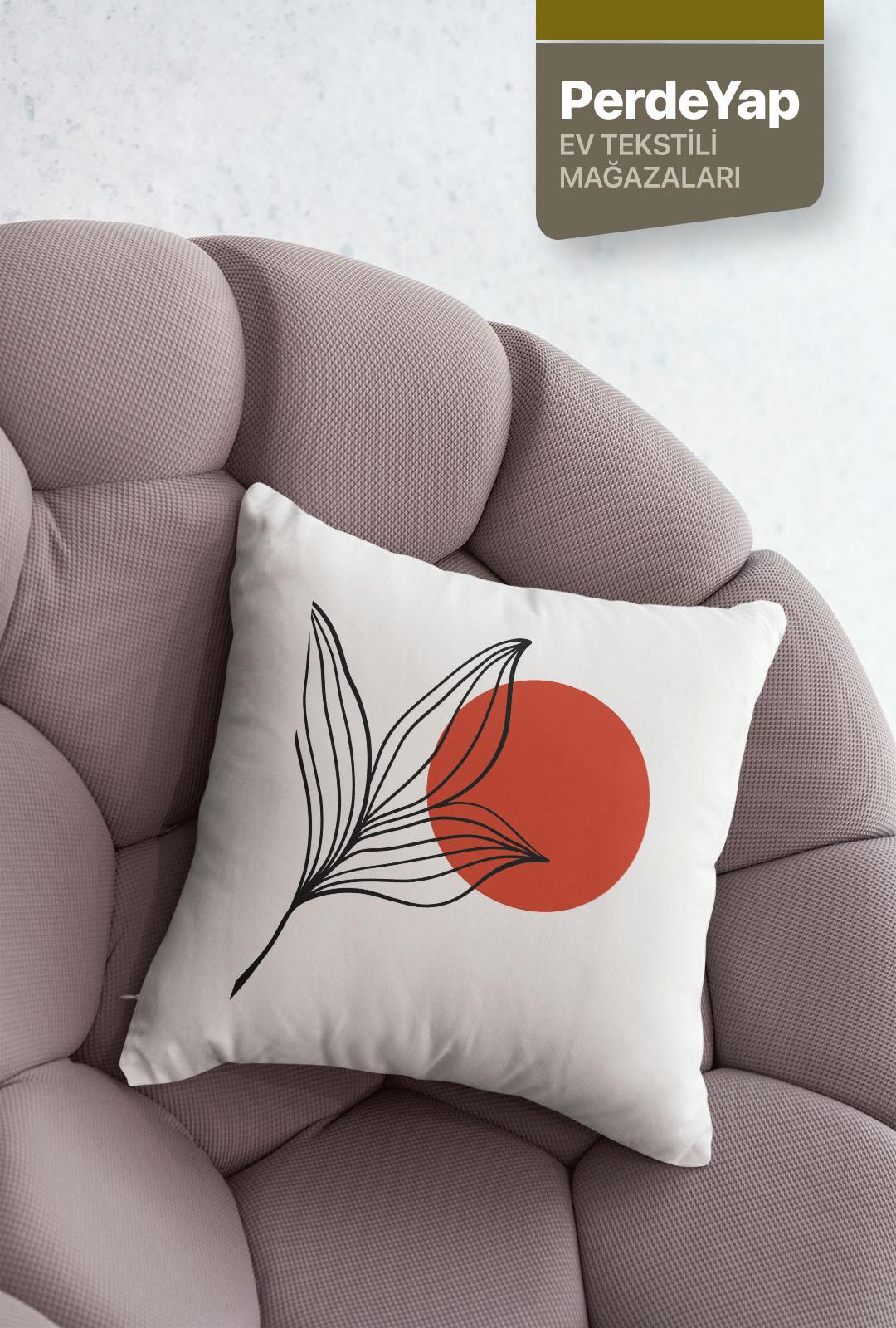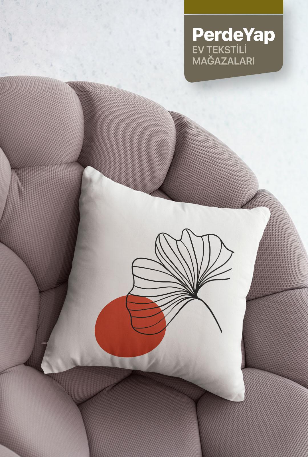 Hayali Gerçeküstü Çiçekler Desenli 4lü Dijital Baskılı Kırlent Kılıfı 43 X 43 Cm Kiremit-Krem 054