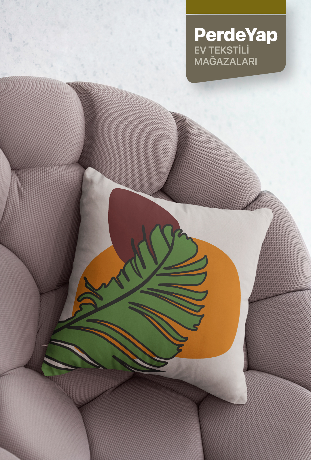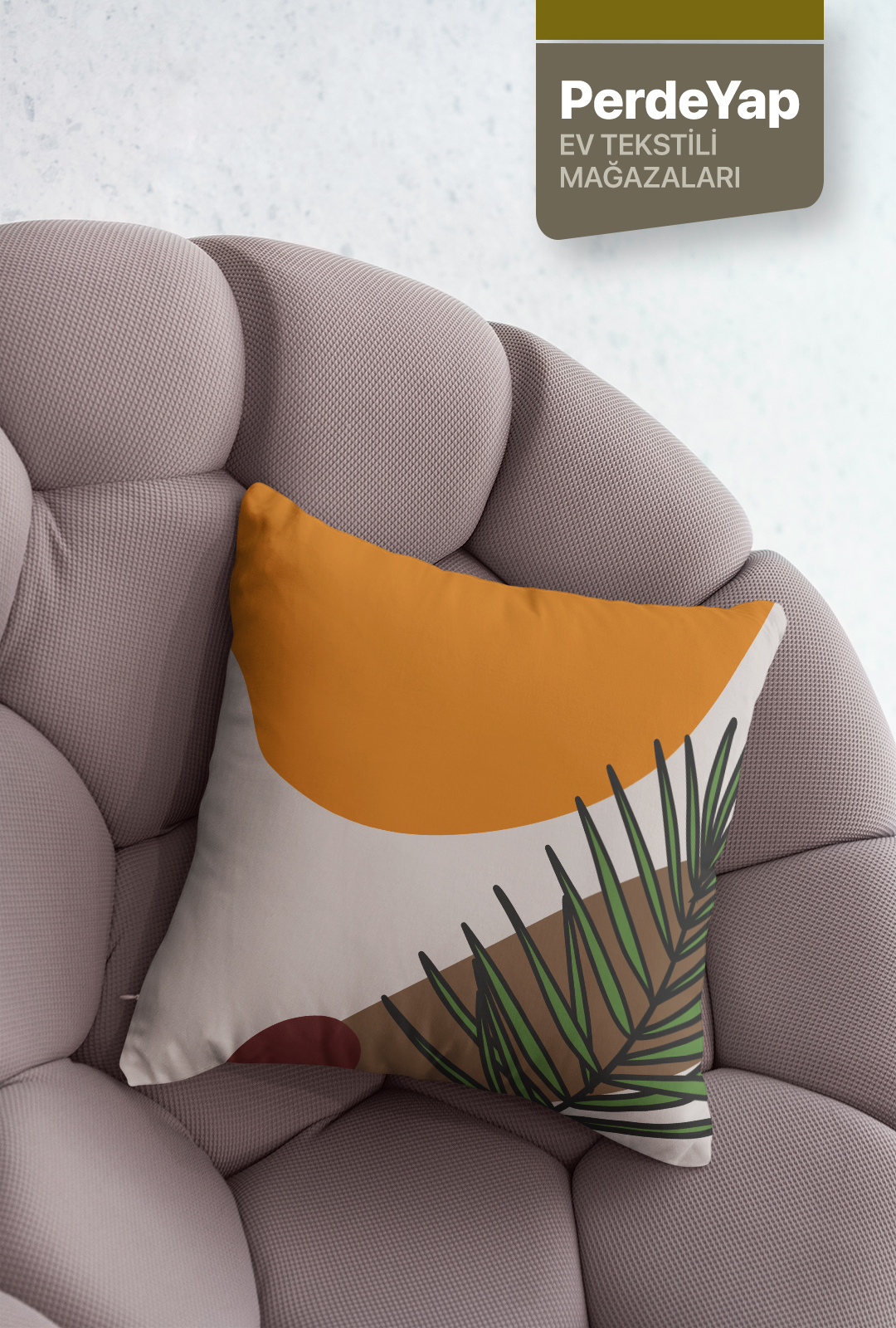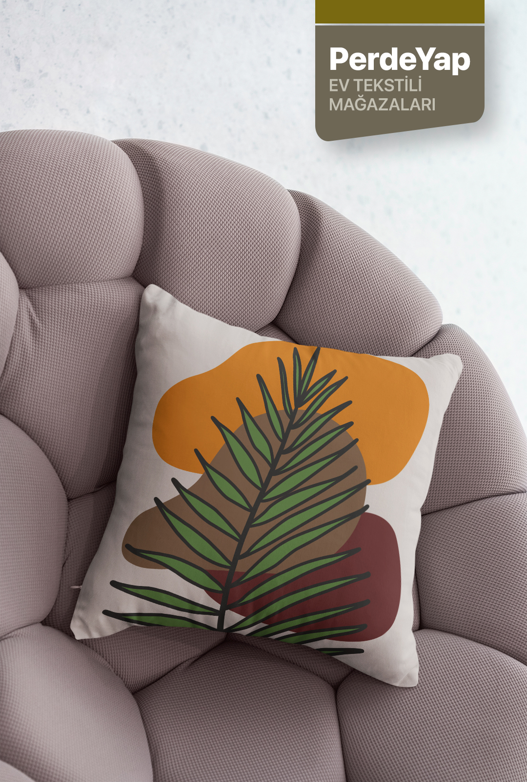 Özel Tasarım Bal Rengi Palmiye Desenli 4lü Dijital Baskılı Kırlent Yastık Kılıfı 43x43 Cm 019