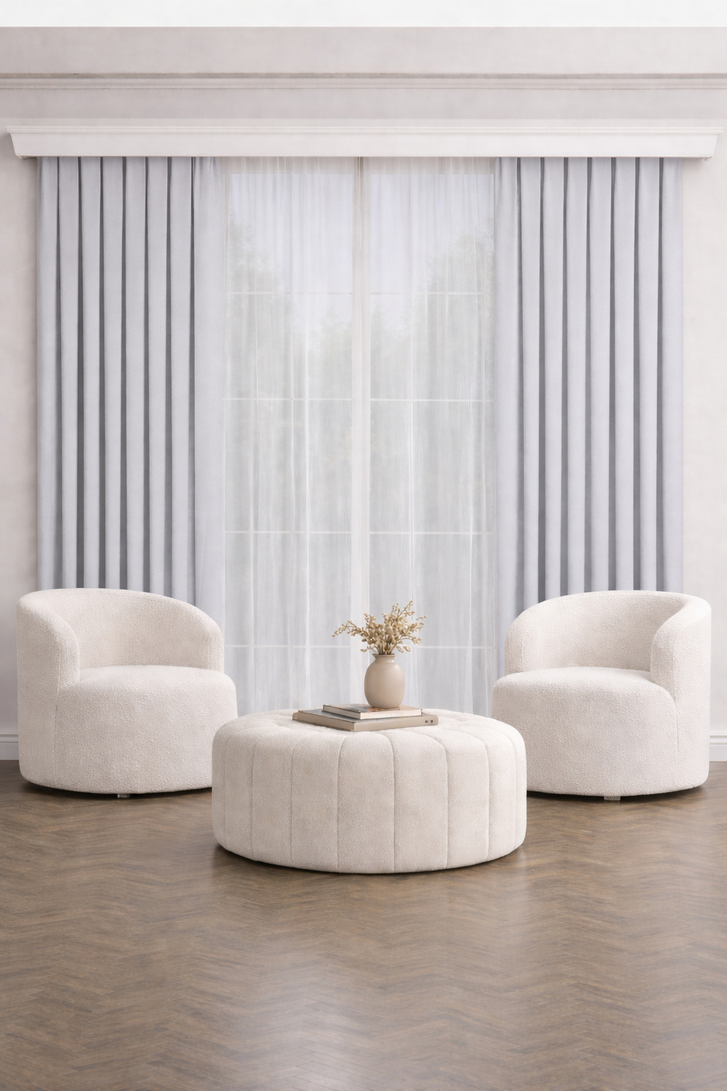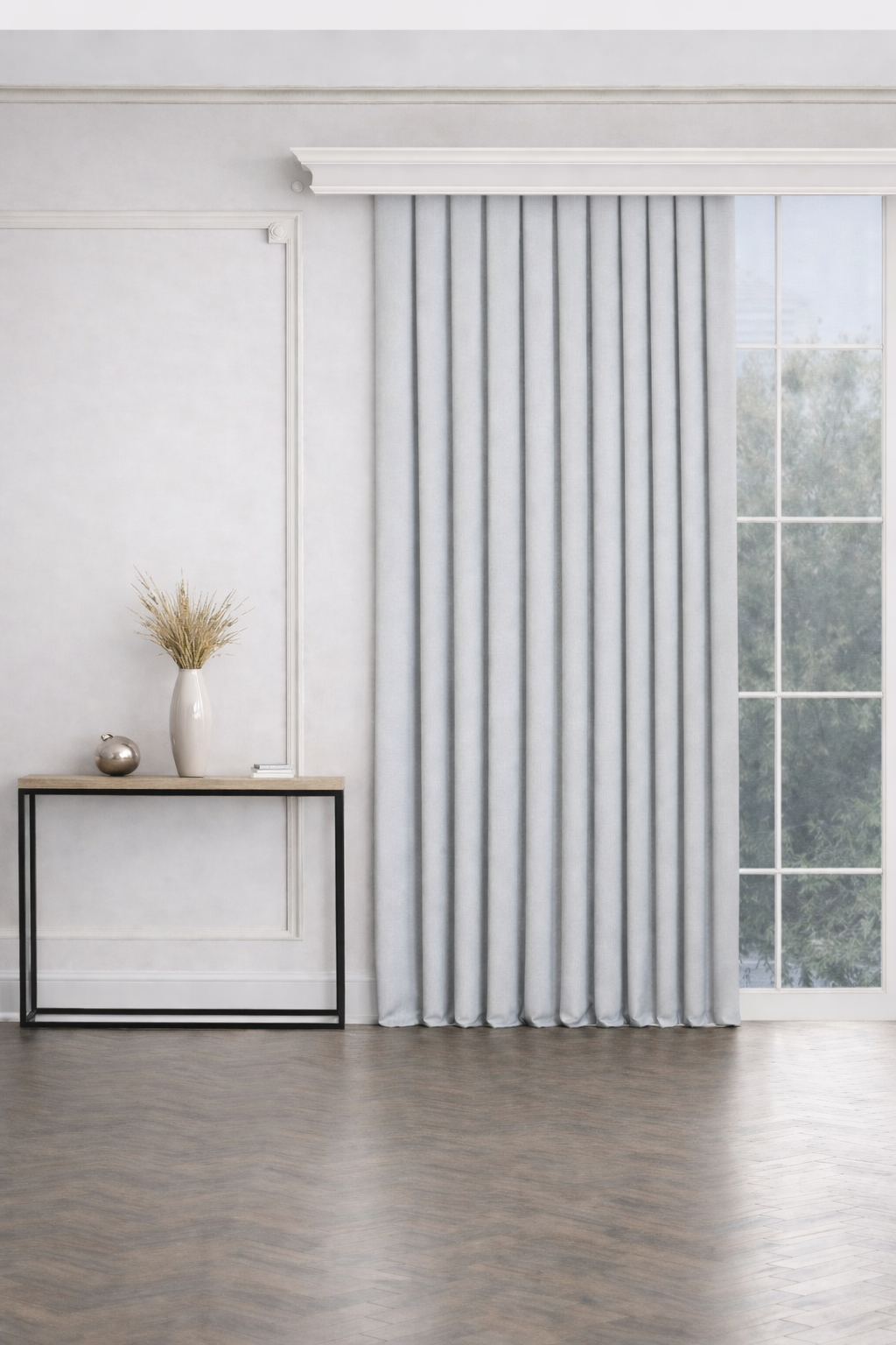 PerdeYap Açık Gri Ada Fon Perde Tek Kanat 1/3 Sık Pile