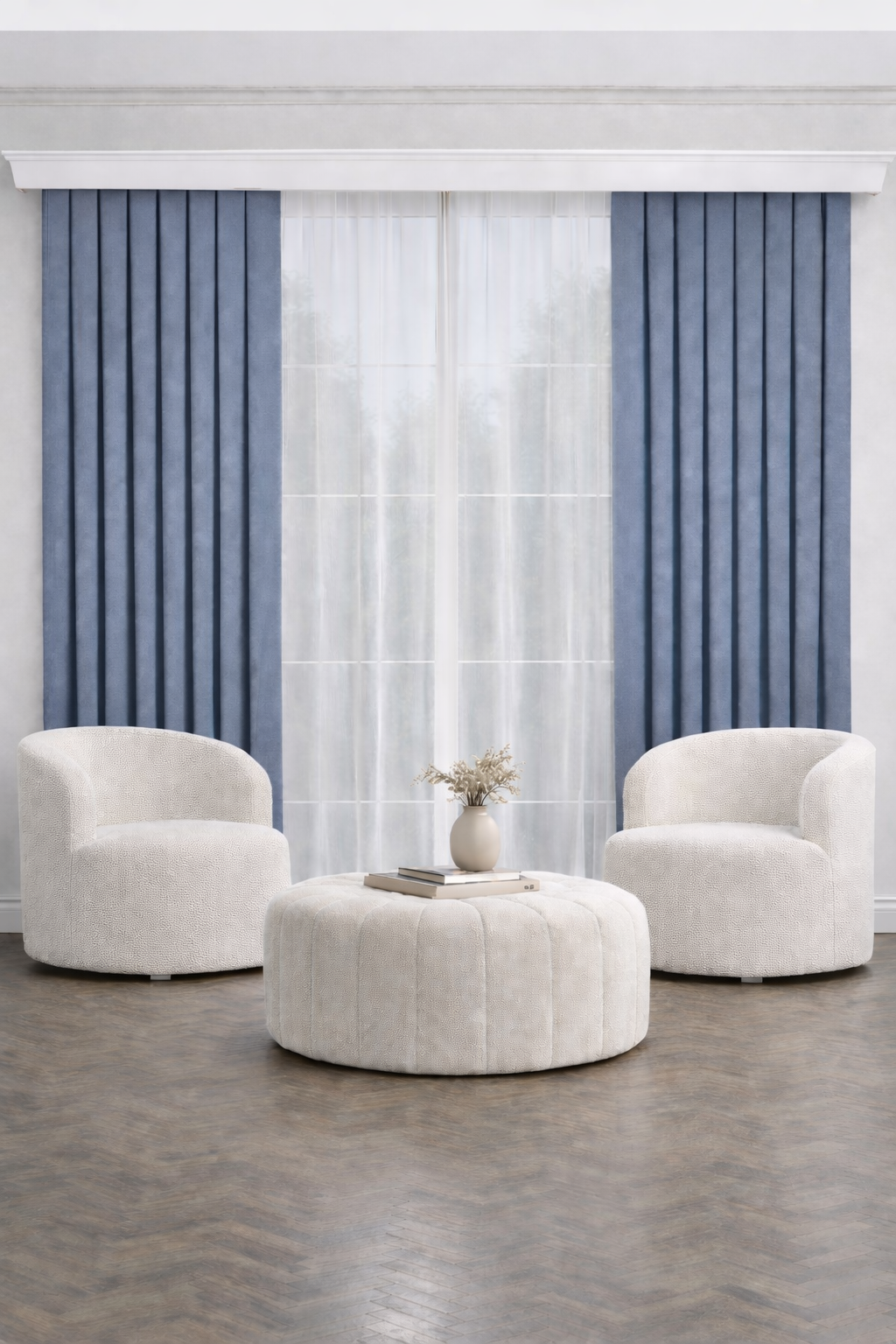 PerdeYap Açık İndigo Ada Fon Perde Tek Kanat 1/3 Sık Pile
