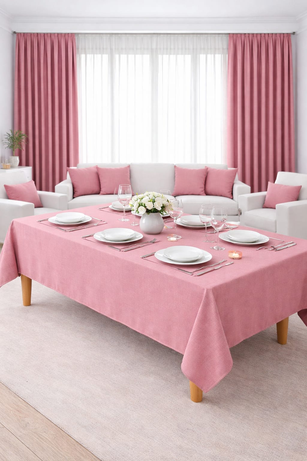PerdeYap Kadife Dokulu Açık Gülkurusu Renk Masa Örtüsü