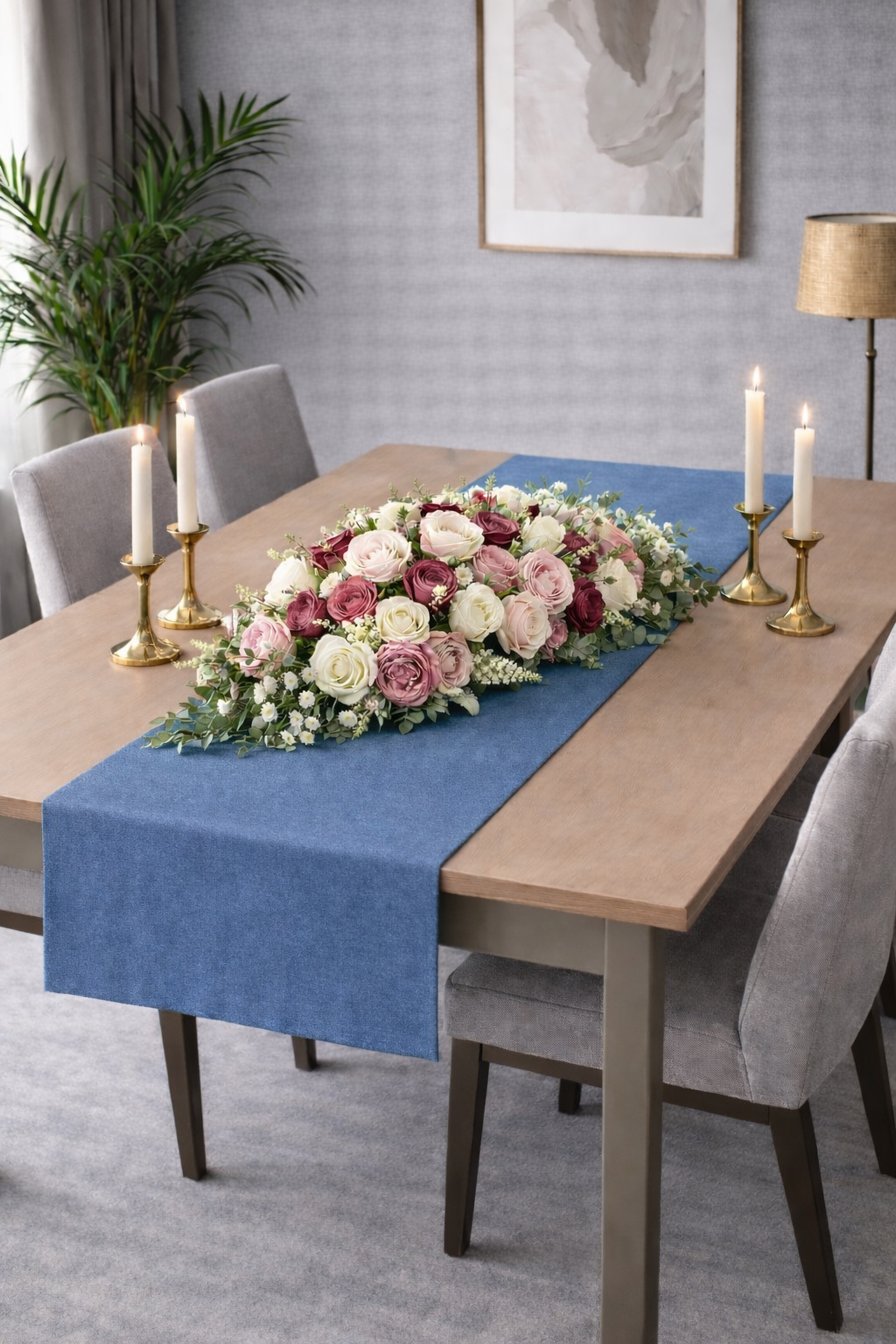 PerdeYap Kadife Dokulu Açık İndigo Renk Ada Serisi Runner 40 x 140 cm