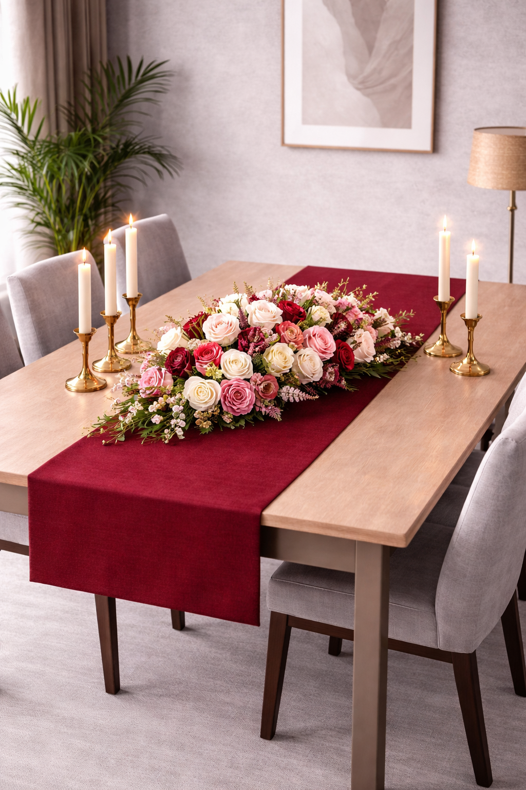 PerdeYap Kadife Dokulu Bordo Renk Ada Serisi Runner 40 x 140 cm