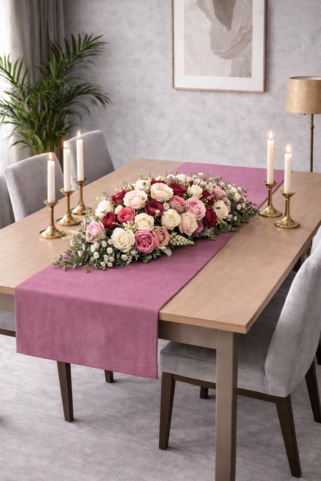PerdeYap Kadife Dokulu Gülkurusu Renk Ada Serisi Runner 40 x 140 cm
