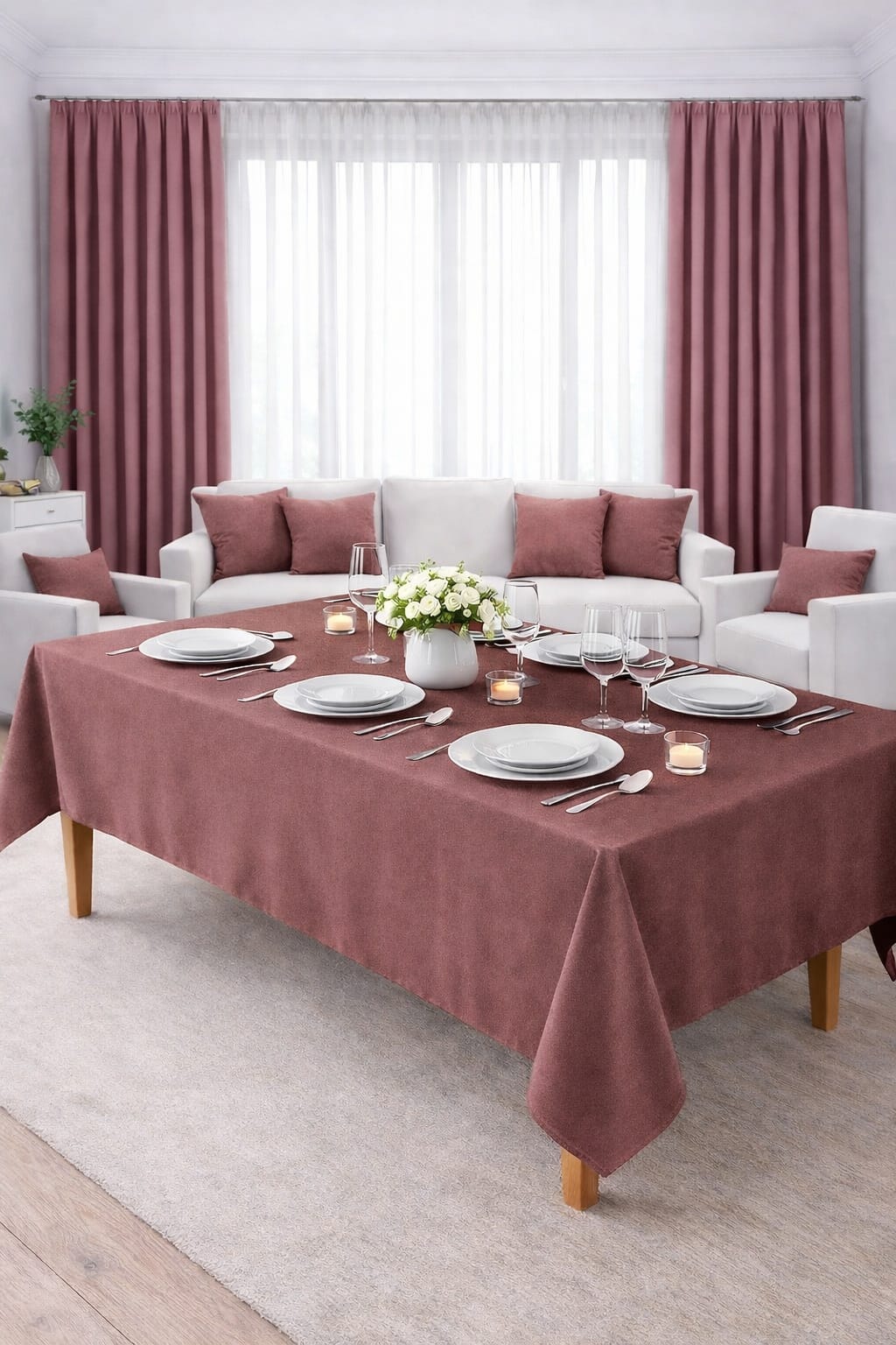 PerdeYap Kadife Dokulu Gülkurusu Renk Masa Örtüsü