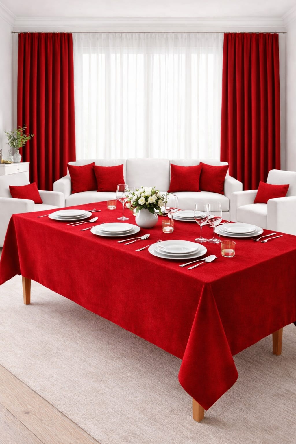 PerdeYap Kadife Dokulu Kırmızı Renk Masa Örtüsü