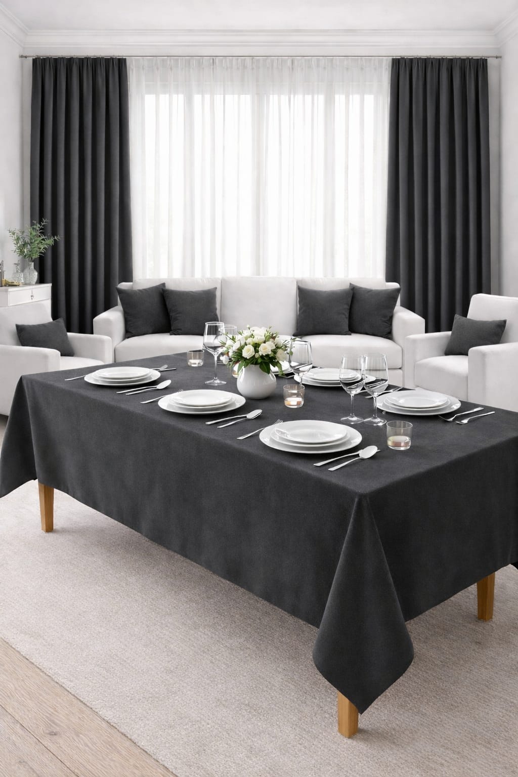 PerdeYap Kadife Dokulu Koyu Gri Renk Masa Örtüsü