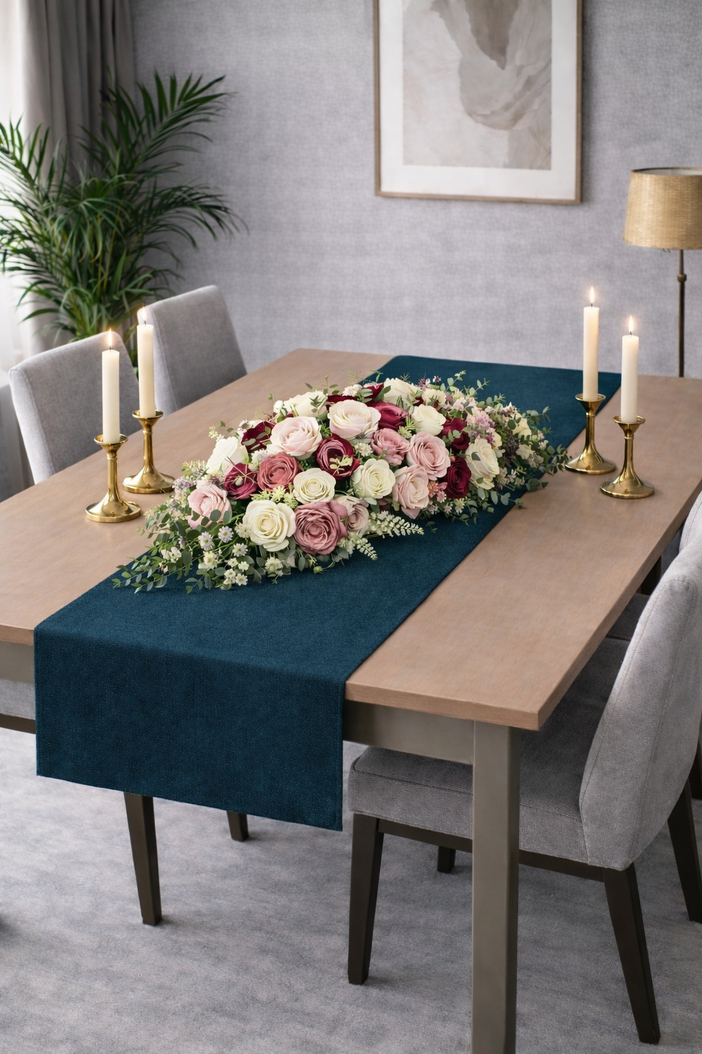PerdeYap Kadife Dokulu Koyu Petrol Renk Ada Serisi Runner 40 x 140 cm