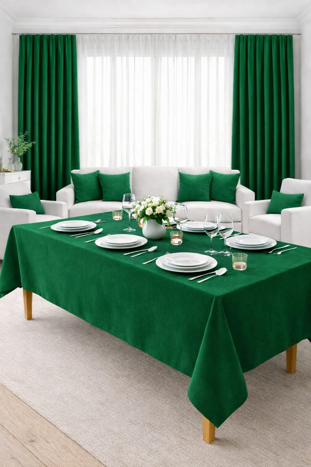 PerdeYap Kadife Dokulu Koyu Yeşil Renk Masa Örtüsü