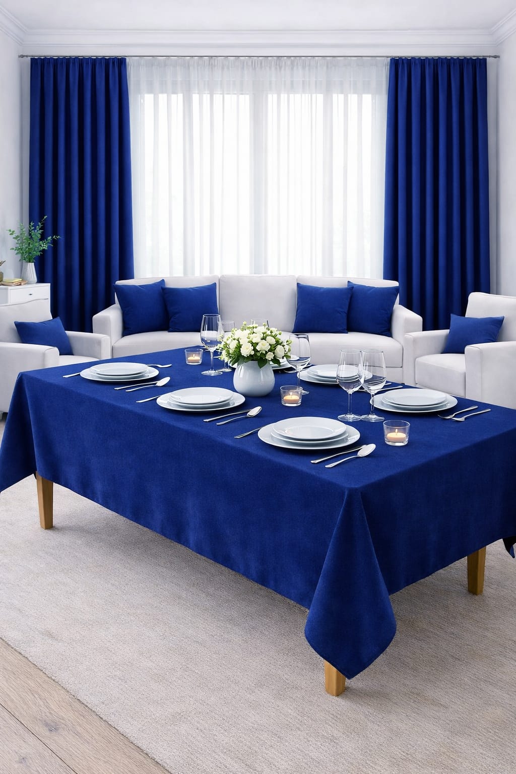 PerdeYap Kadife Dokulu Parlement Mavisi Renk Masa Örtüsü