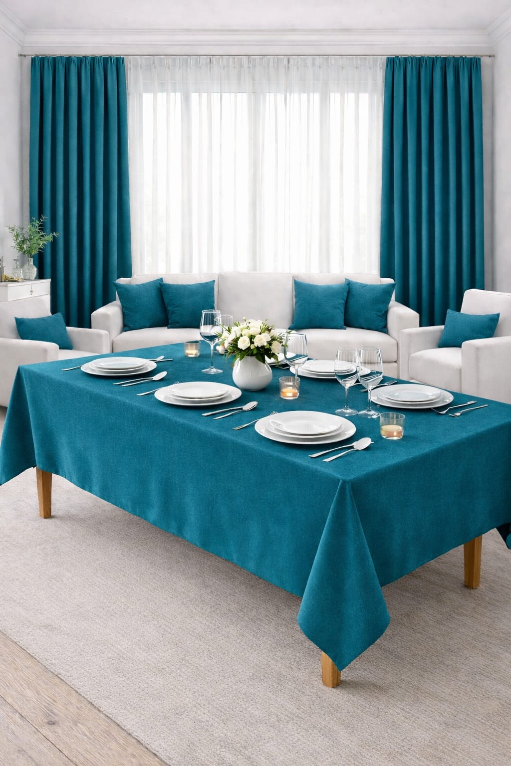 PerdeYap Kadife Dokulu Petrol Renk Masa Örtüsü