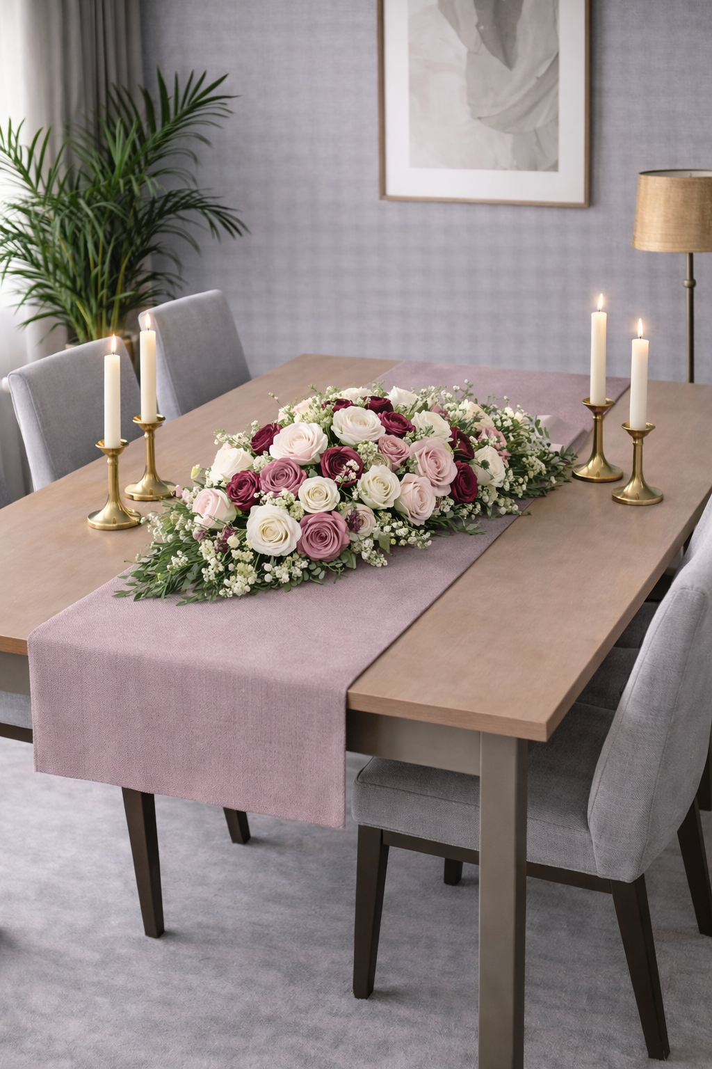PerdeYap Kadife Dokulu Pudra Renk Ada Serisi Runner 40 x 140 cm