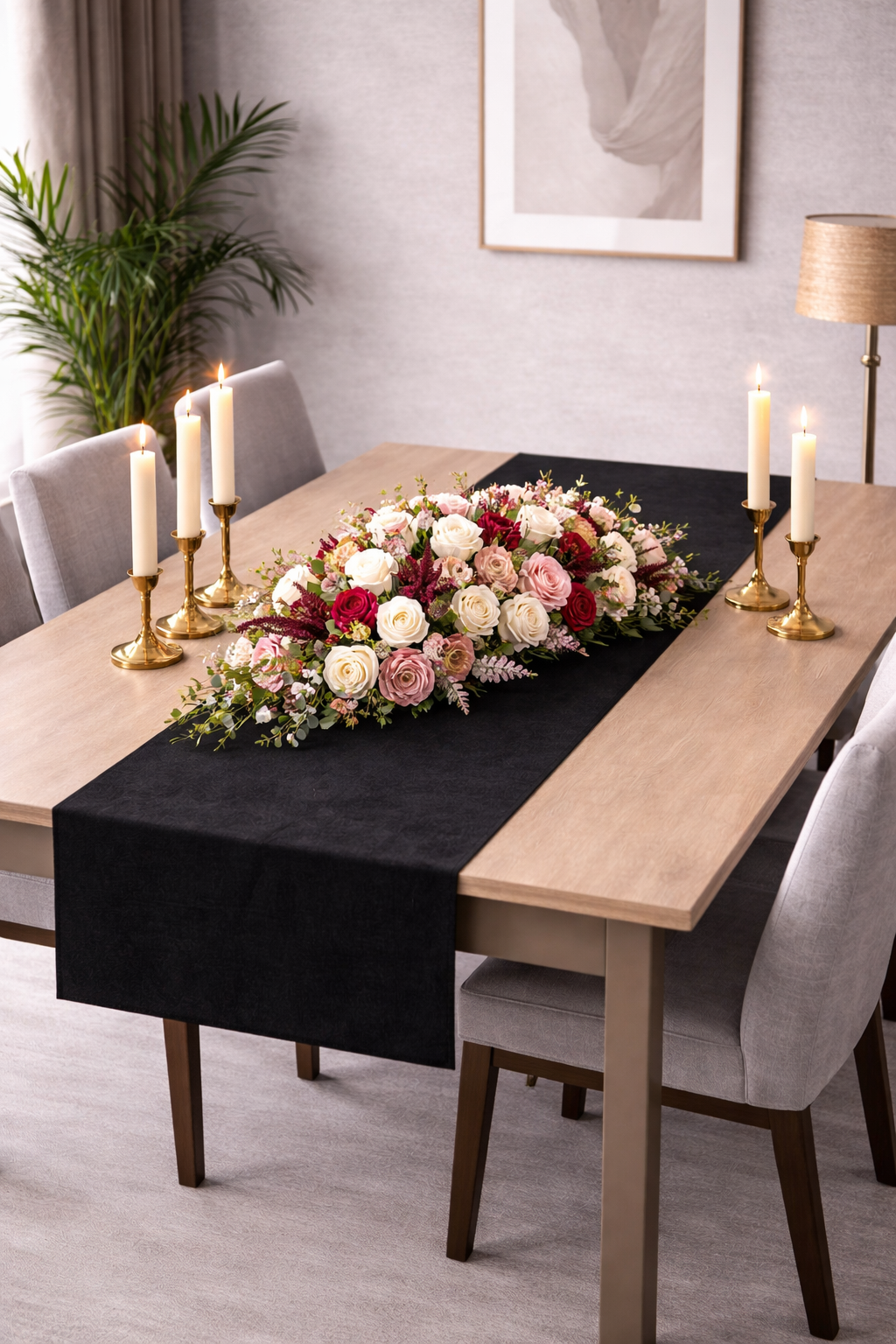 PerdeYap Kadife Dokulu Siyah Renk Ada Serisi Runner 40 x 140 cm