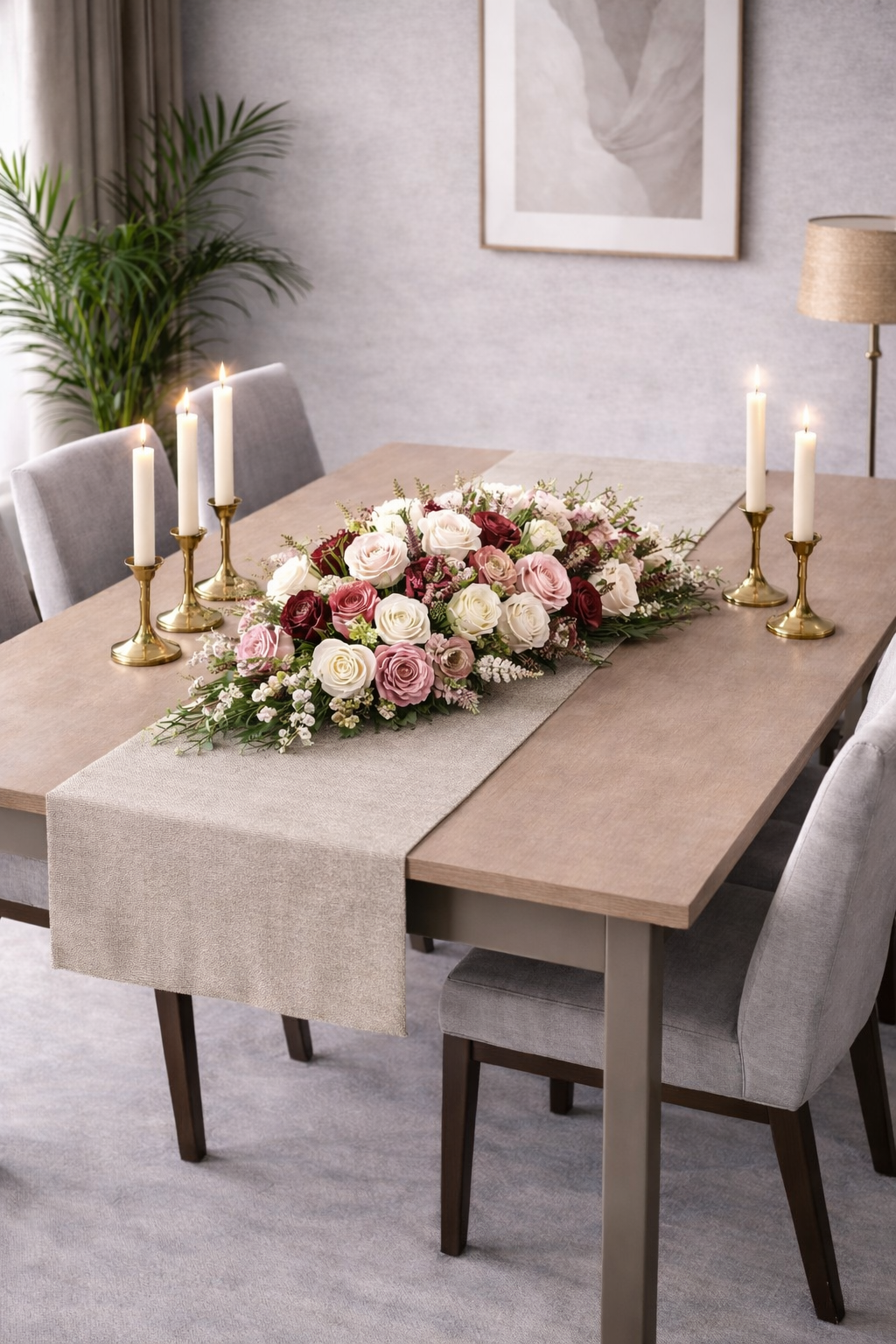 PerdeYap Kadife Dokulu Taş Renk Ada Serisi Runner 40 x 140 cm