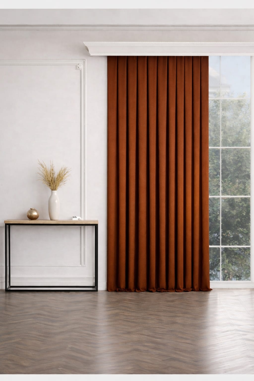 PerdeYap Kiremit Ada Fon Perde Tek Kanat 1/3 Sık Pile
