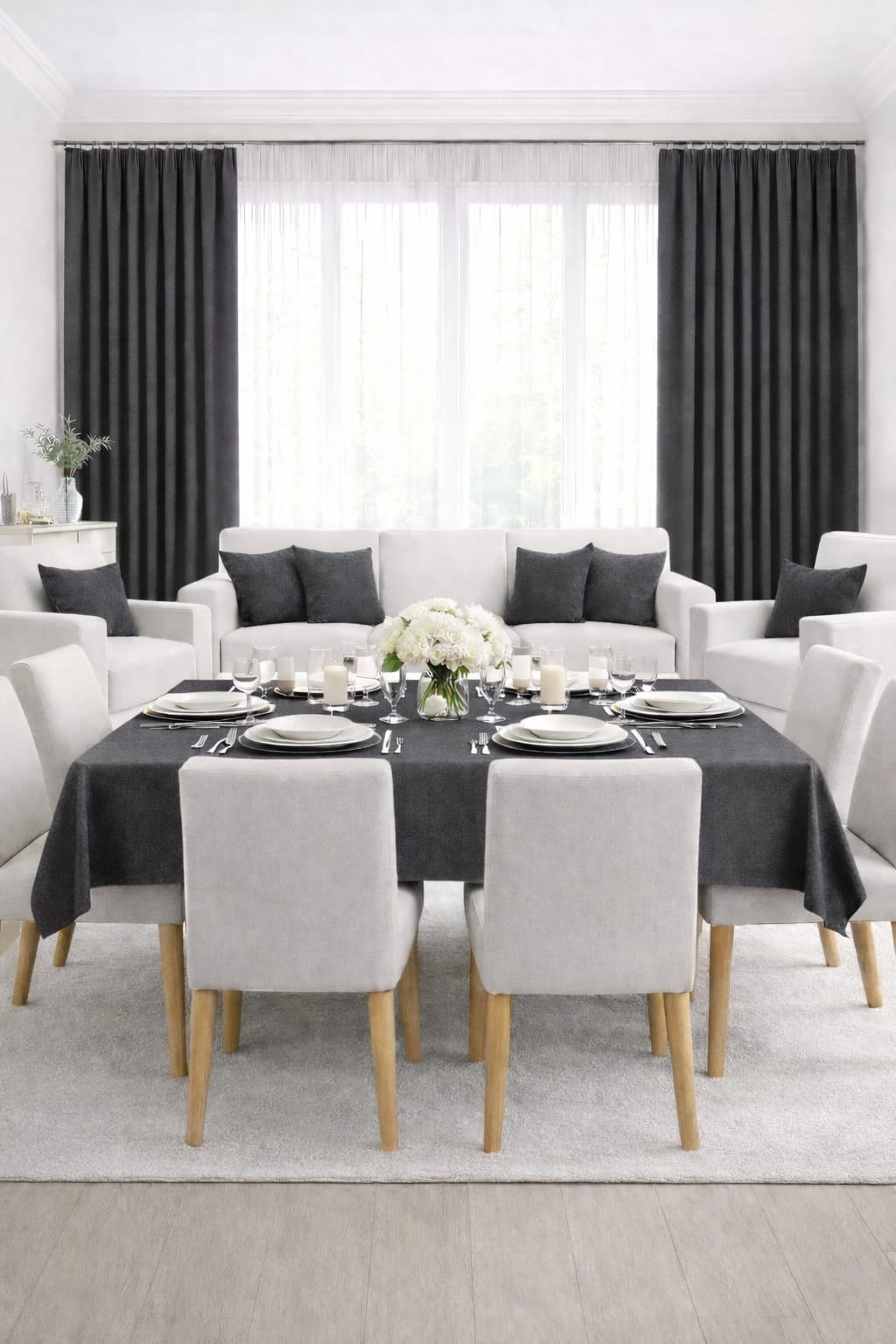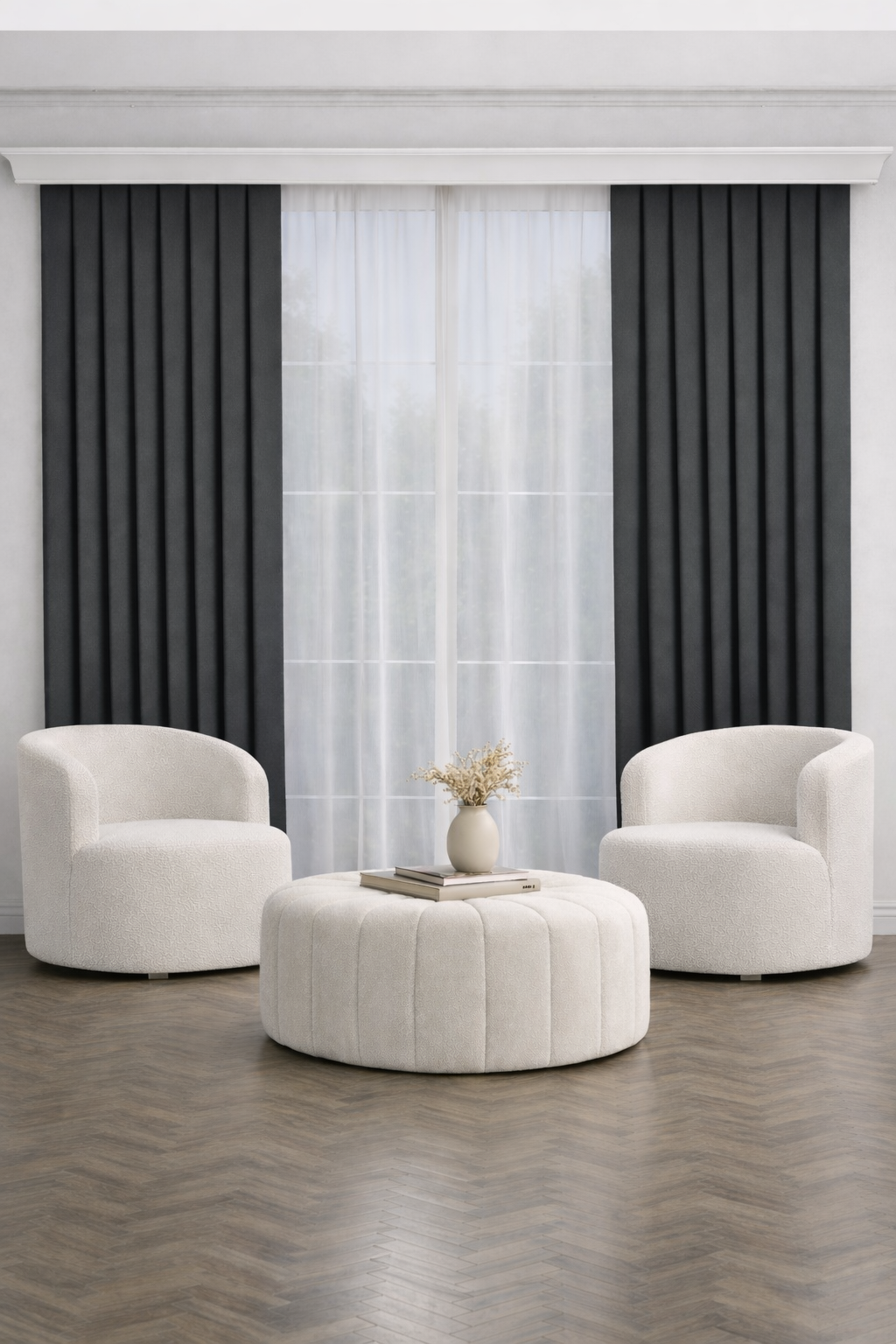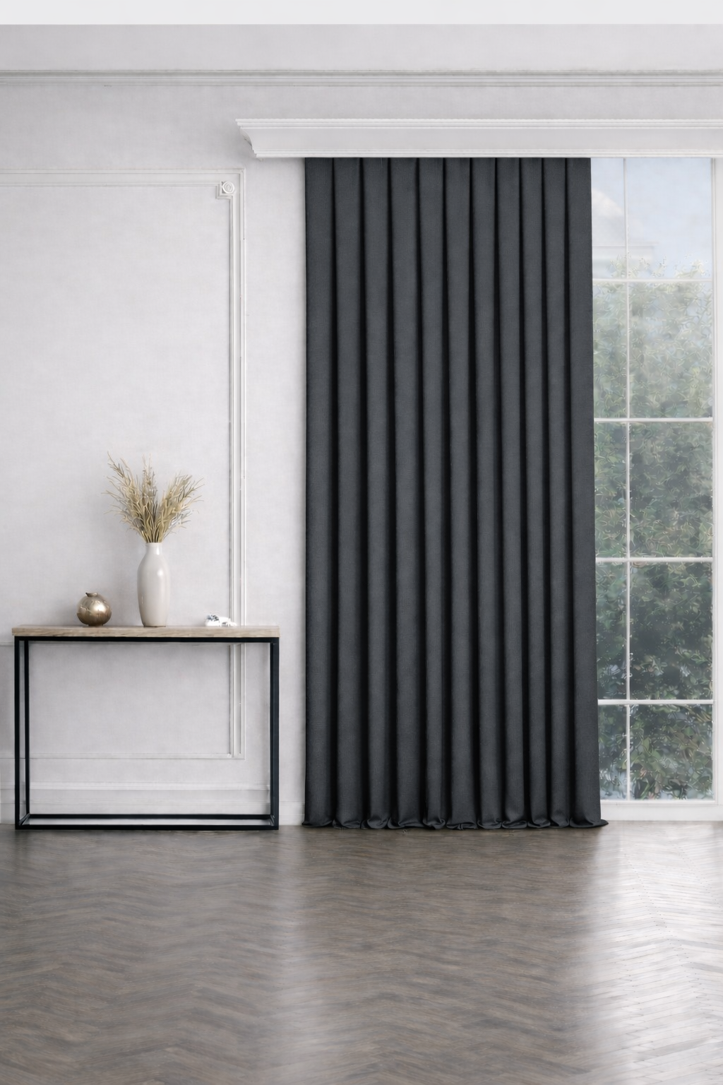 PerdeYap Koyu Gri Ada Fon Perde Tek Kanat 1/3 Sık Pile