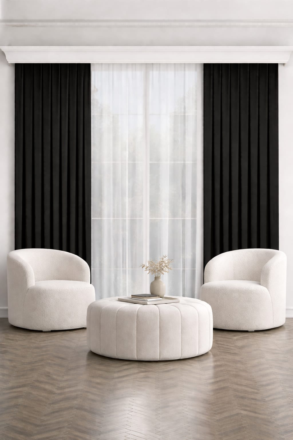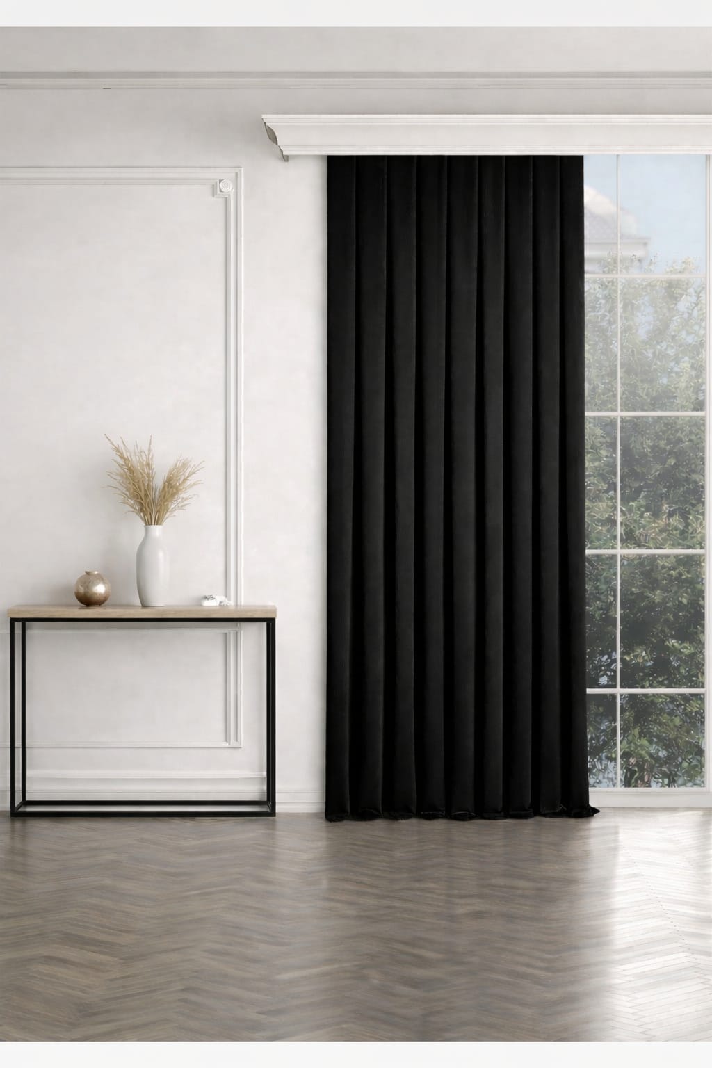 PerdeYap Siyah Ada Fon Perde Tek Kanat 1/3 Sık Pile