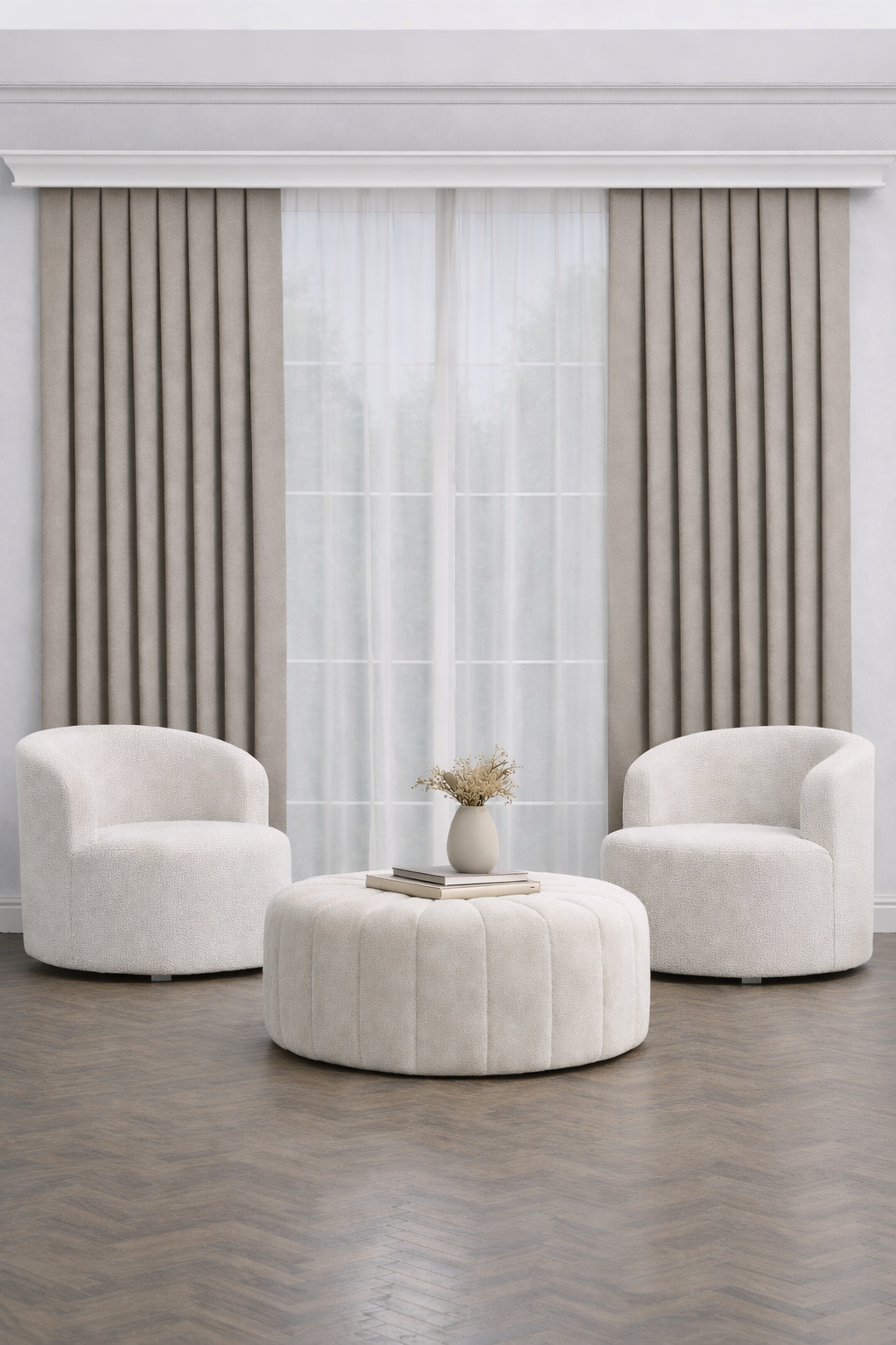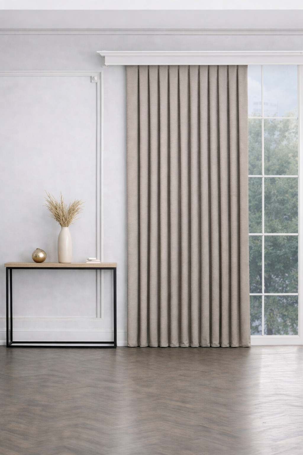 PerdeYap Taş Rengi Ada Fon Perde Tek Kanat 1/3 Sık Pile