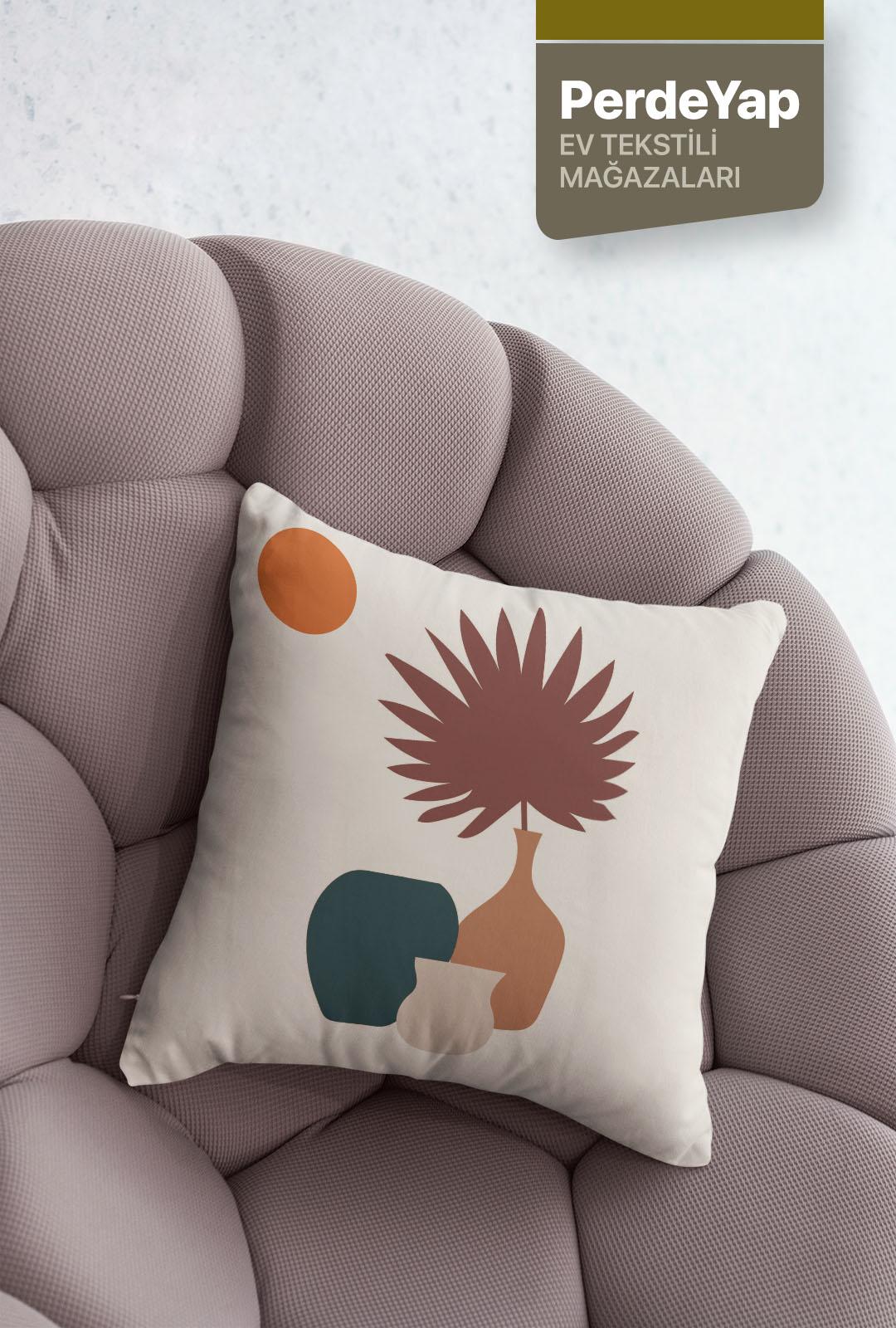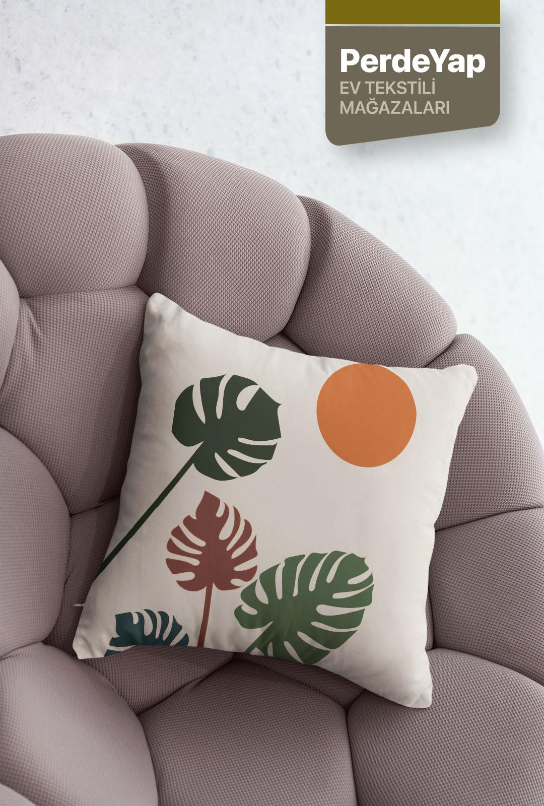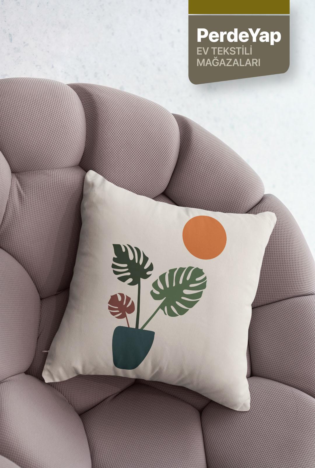Tropikal Canlılığı Evinize TaşıyınBu renkli tropikal vazo ve yaprak desenli kırlent kılıfı, oturma odası, yatak odası ya da her türlü yaşam alanında enerjik ve sıcak bir atmosfer yaratır.