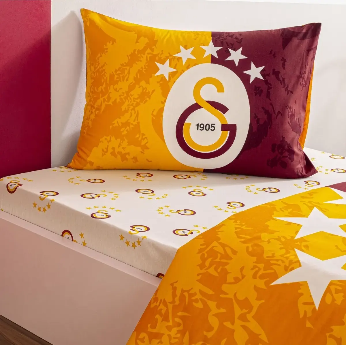 Galatasaray taraftarları için özel olarak tasarlanan bu 5. Yıldız Taç lisanslı nevresim takımı, takımınıza olan sevginizi yatak odanızda da göstermenizi sağlıyor. Yumuşak pamuklu yapısı ile rahat bir uyku sunarken, kaliteli baskısı ile uzun süre canlılığını korur. Yumuşacık dokusu ve lisanslı desenleriyle tek kişilik yatak odalarınıza eğlenceli ve özgün bir dokunuş katın. Perdeyap olarak Taç’ın lisanslı nevresim takımlarıyla uyku konforunuzu zirveye taşıyoruz. Şık tasarımları sayesinde odanıza modern bir hava katan bu nevresim takımları, %100 pamuktan üretilmiş olup cildinize dost yumuşaklığıyla öne çıkıyor. Nefes alabilen yapısıyla ısıyı dengeler ve her mevsim konforlu bir uyku deneyimi sunar.