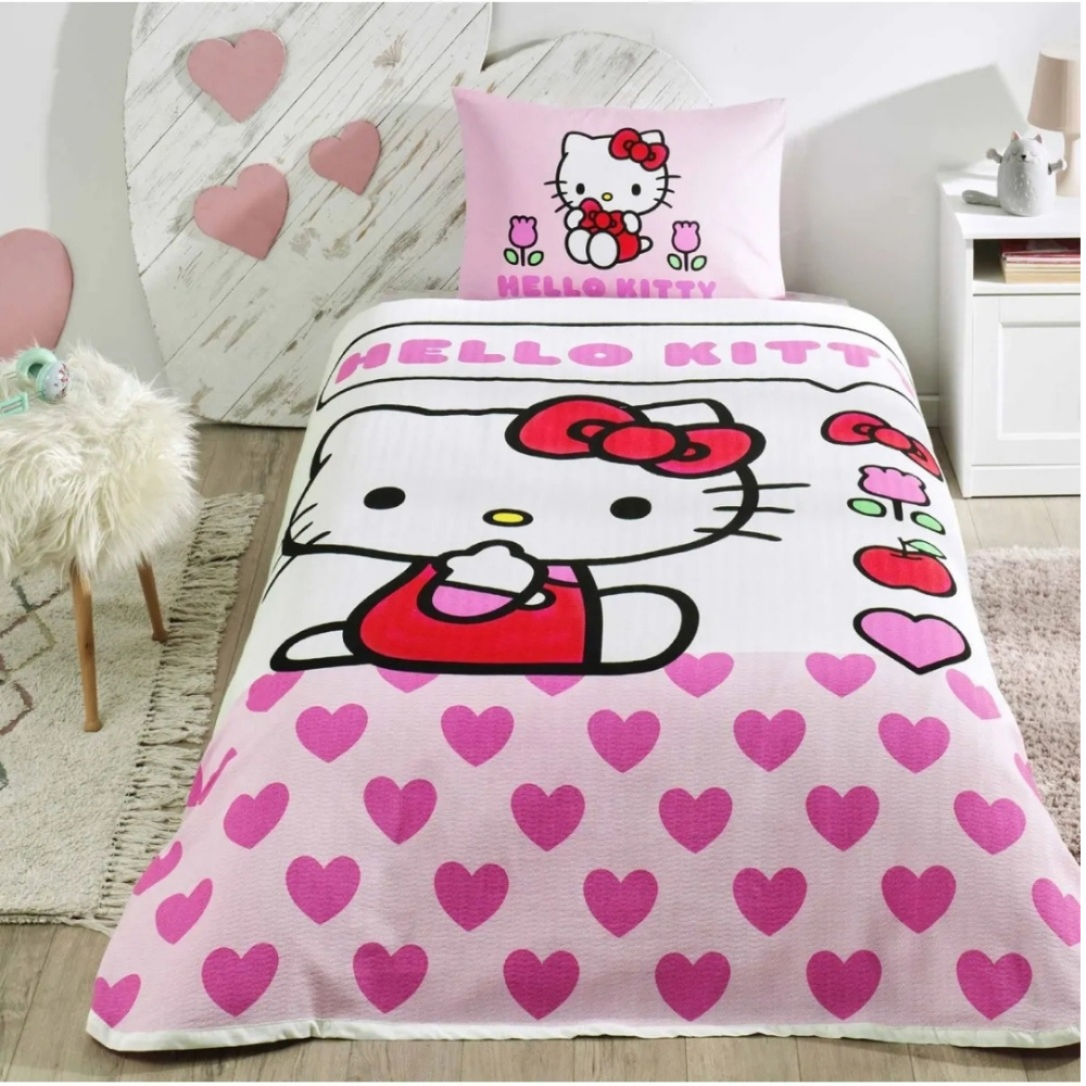 Taç Hello Kitty Love tek kişilik pike takımı, Hello Kitty severler için özel olarak tasarlandı. Sevimli tasarımı ve yumuşak dokusuyla çocukların favorisi olacak bu pike, sıcak yaz gecelerinde serinlik sağlar. Yumuşacık dokusu ve şık tasarımıyla konforlu bir uyku sunarken, yatak odalarınıza hijyenik ve estetik bir dokunuş kazandırın. Perdeyap olarak, Taç’ın tek kişilik pike takımlarıyla yatağınızı şıklık ve rahatlıkla buluşturuyoruz. Taç pikeler, hafifliği ve yumuşak dokusuyla sıcak yaz gecelerinde serinlik sağlayarak ideal bir uyku ortamı sunar. Kaliteli pamuk kumaşı ile nefes alabilir yapıda olup, cildinizle dosttur.