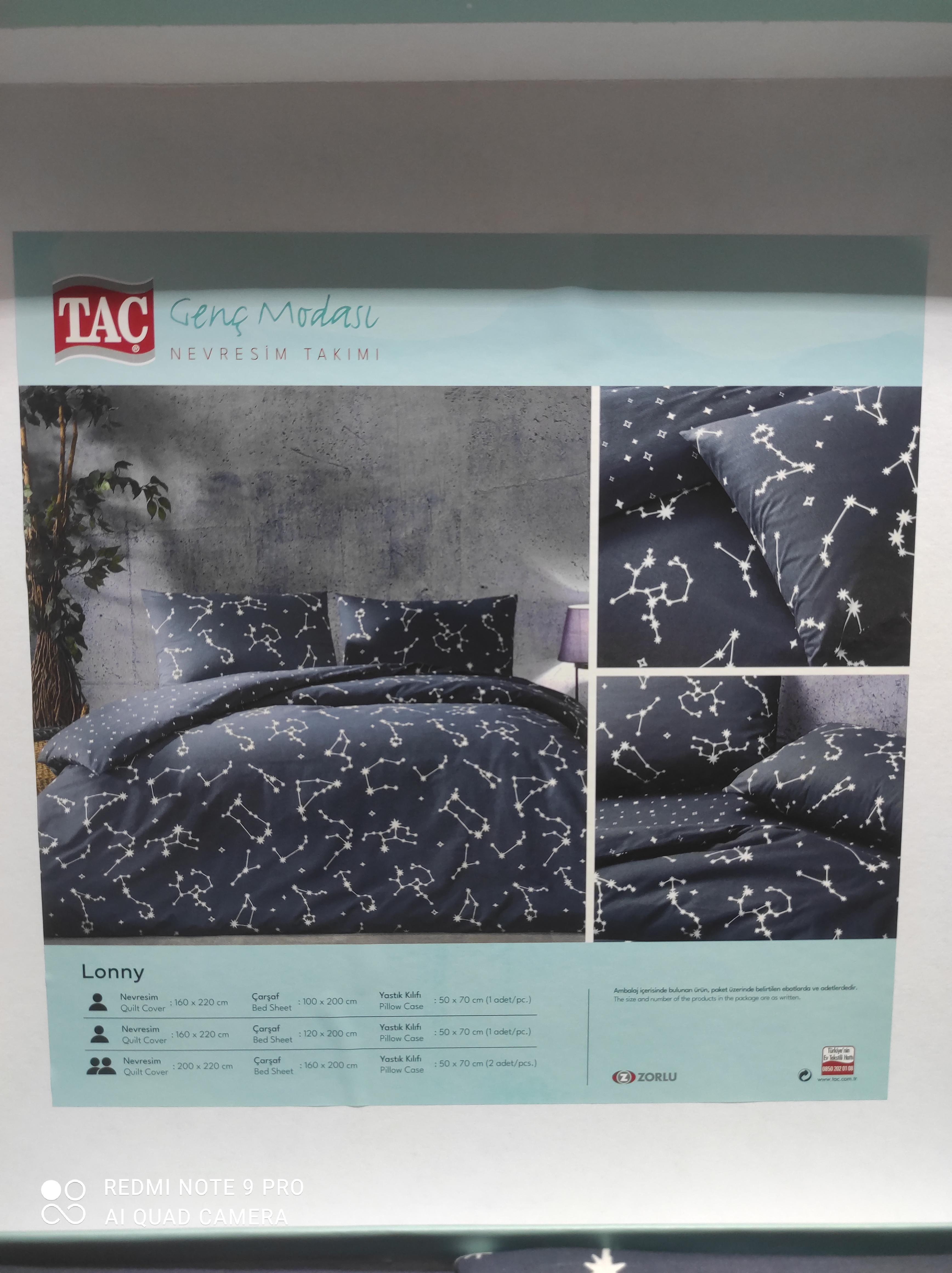 Taç markasının derin lacivert rengi ve kaliteli Ranforce kumaşı ile üretilmiş Lonny tek kişilik nevresim takımı, odanıza sofistike bir hava katar. Yumuşak ve rahat yapısıyla keyifli bir uyku deneyimi sunar.Yumuşacık dokusu ve canlı desenleriyle tek kişilik yatak odalarınıza zarif bir dokunuş katın. Perdeyap olarak Taç nevresim takımlarıyla uyku konforunuzu zirveye taşıyoruz. Şık tasarımları sayesinde odanıza modern bir hava katan bu nevresim takımları, %100 pamuktan üretilmiş olup cildinize dost yumuşaklığıyla dikkat çekiyor. Nefes alabilen yapısıyla ısıyı dengeler ve her mevsim konforlu bir uyku deneyimi sunar.