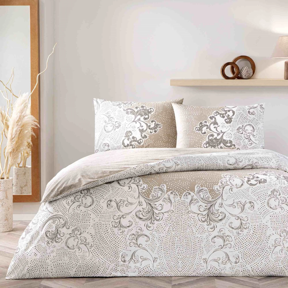 Lucinda Ranforce çift kişilik nevresim takımı, vizon rengi ve yumuşak dokusuyla zarif bir görünüm sunar. Yüksek kaliteli %100 pamuk kumaşı sayesinde rahat ve huzurlu bir uyku sağlar. Yumuşacık dokusu ve canlı desenleriyle yatak odanıza zarif bir dokunuş katmak ister misiniz? Perdeyap olarak Taç nevresim takımlarıyla uyku konforunuzu zirveye taşıyoruz. Şık tasarımları sayesinde odanıza modern bir hava katan bu nevresim takımları, %100 pamuktan üretilmiş olup cildinize dost yumuşaklığıyla dikkat çekiyor. Nefes alabilen yapısıyla ısıyı dengeler ve her mevsim konforlu bir uyku deneyimi sunar.